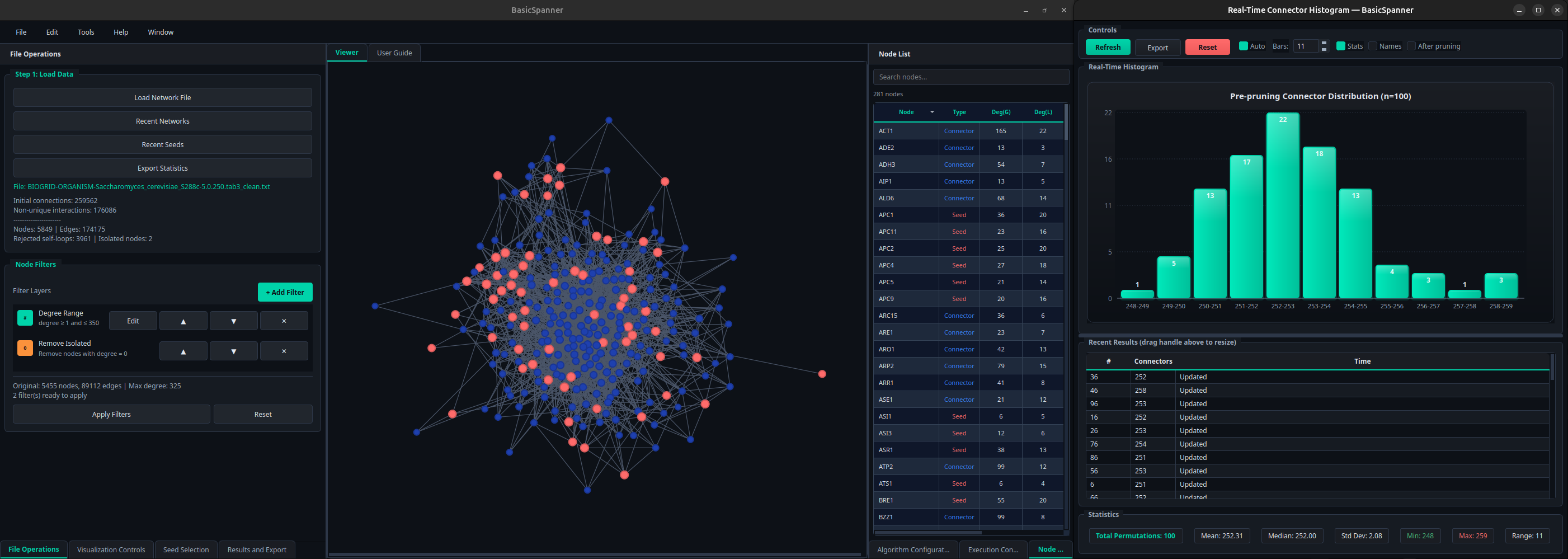 - Stackable graph filters (degree range, betweenness centrality, largest connected component, isolated-node removal, name patterns).